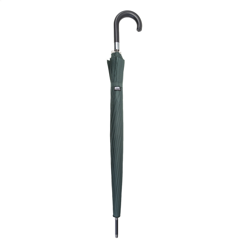 Nagy méretű, automata, szélálló esernyő 16 panellel, PU bőr fogantyúval, fém vázzal és üvegszálas bordákkal. 190T RPET pongee. Megkülönböztető RPET címkével. Márkás hordtáskában. André Philippe márkatermék.