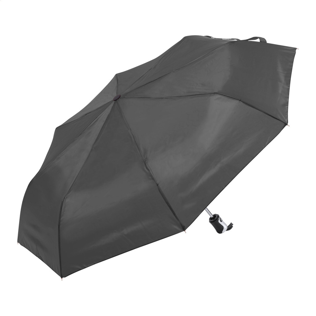 8 paneles szélálló, mindkét irányban automata esernyő fém vázzal, valamint fém és üvegszálas merevítőkkel. Csuklópánttal, műanyag fogóval és színével egyező tokkal. 190T poliészter.