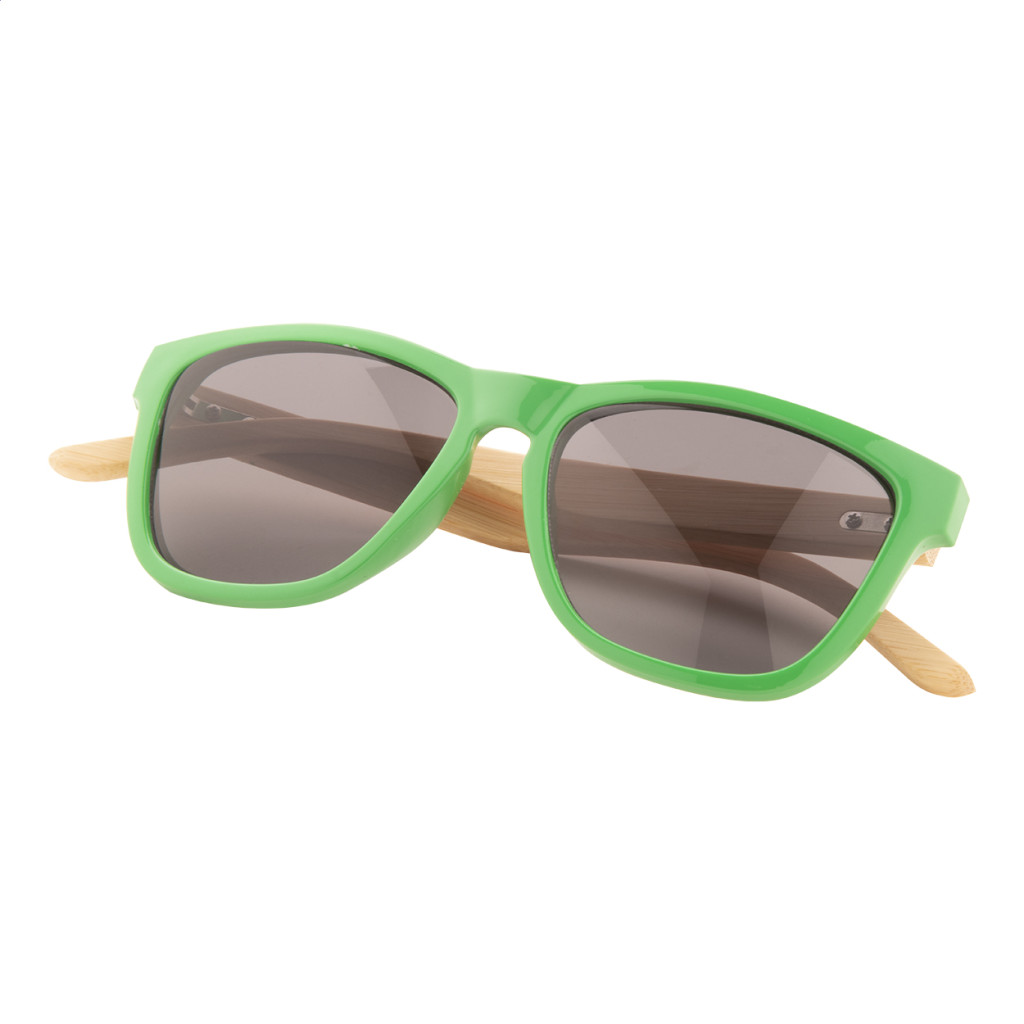 Napszemüvegek színes, műanyag kerettel és bambusz szárral. UV 400 védelemmel.