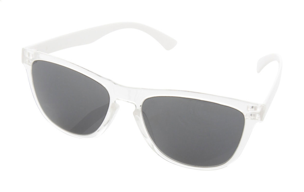Műanyag UV 400-as fényvédelemmel ellátott egyediesíthető napszemüveg. Különböző színekben variálható a termék kerete és szára. Minimális rendelési mennyiség: 50 db.