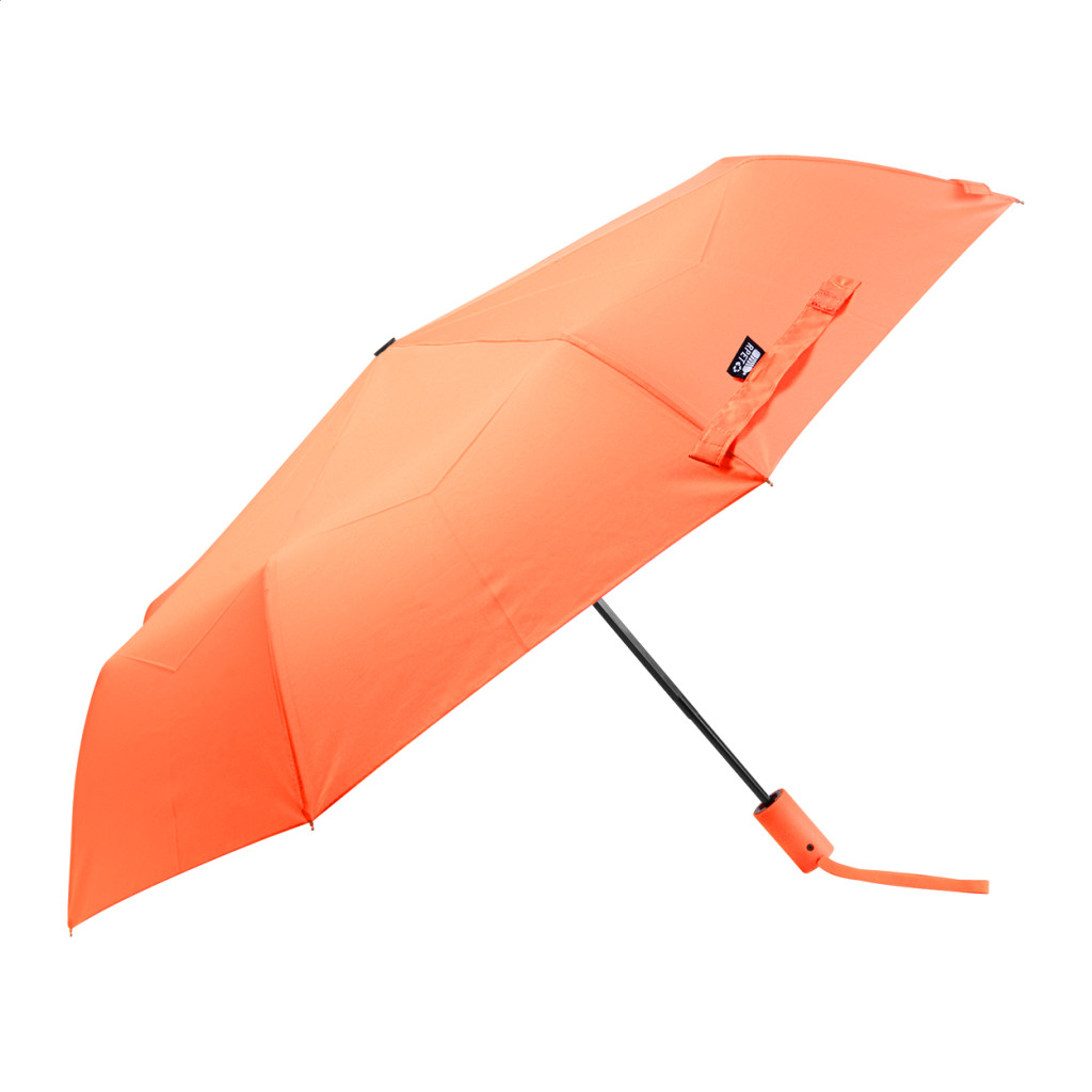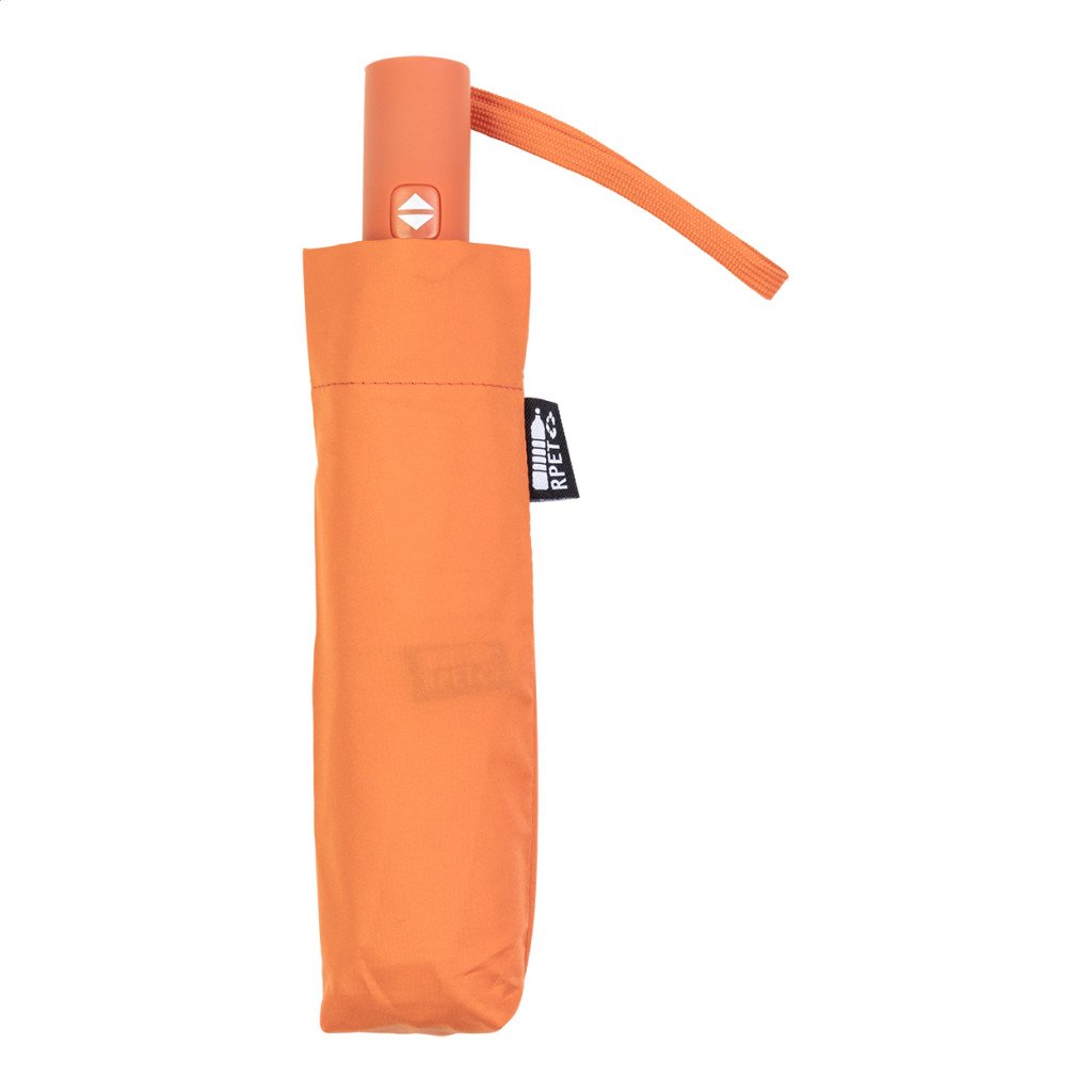 Teljesen automata (nyitás/zárás), szélálló, összecsukható esernyő 8 panellel, színben megegyező tasakban. Fém kerettel, üvegszálas bordákkal és gumírozott fogantyúval. 190T RPET pongee. Megkülönböztető RPET címkével.