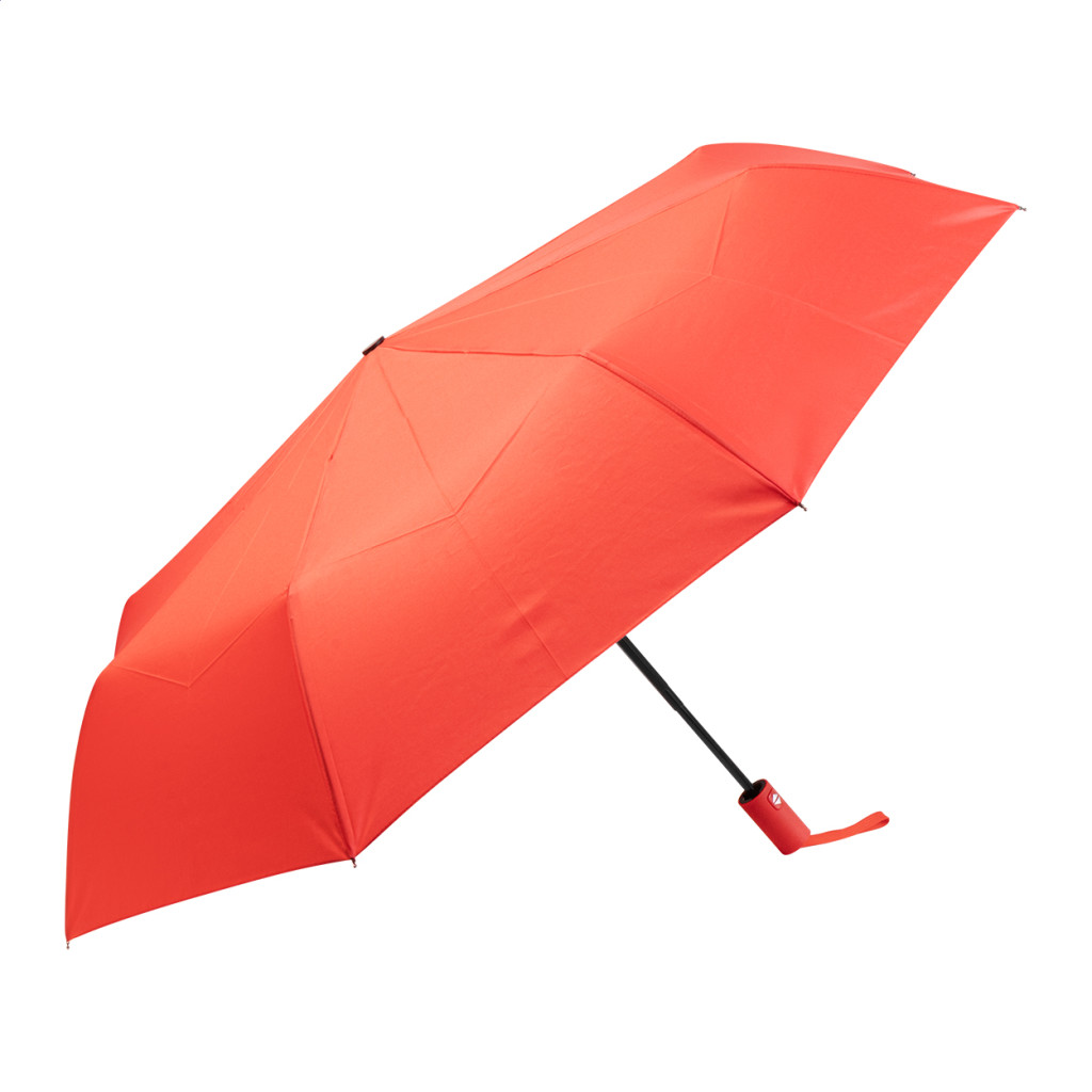 Teljesen automata (nyitás/zárás), szélálló, összecsukható esernyő 8 panellel, színben megegyező tasakban. Fém kerettel, üvegszálas bordákkal és gumírozott fogantyúval. 190T RPET pongee. Megkülönböztető RPET címkével.