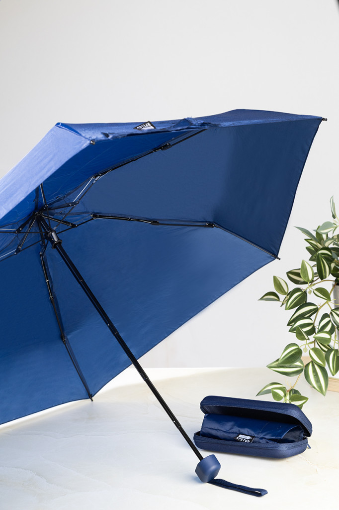 Manuális, szélálló, 3 részes, 6 paneles mini esernyő, színben hozzáillő tasakban és cipzáras EVA kemény tokban. Fém vázzal, üvegszálas bordákkal és kompakt, csuklópántos fogantyúval. 190T RPET pongee, megkülönböztető RPET címkével.