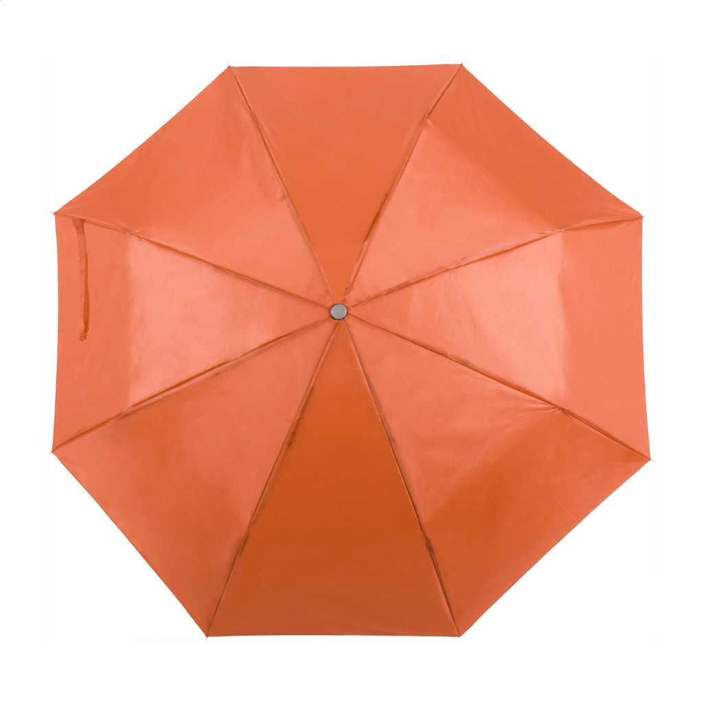 Összecsukható, manuális 8 paneles esernyő, fém tengellyel és vázzal, az esernyő színével megegyező tokban. Anyaga: 170T poliészter.