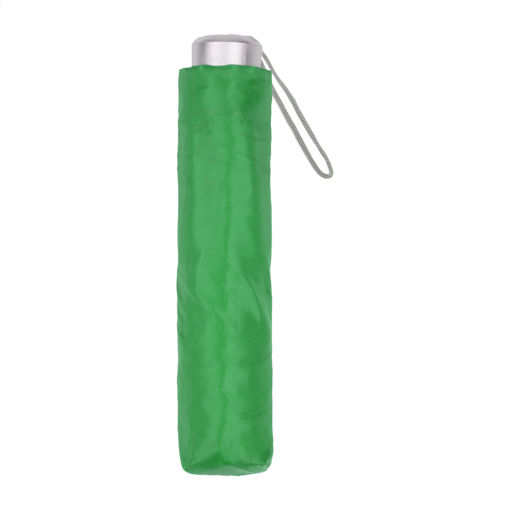 Összecsukható, manuális 8 paneles esernyő, fém tengellyel és vázzal, az esernyő színével megegyező tokban. Anyaga: 170T poliészter.