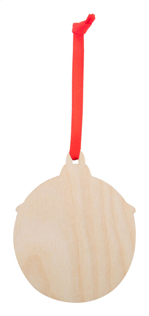 Nyírfából készült karácsonyfadísz karácsonyi mintával és piros szalaggal. A szalagot mellé csomagolva szállítjuk.