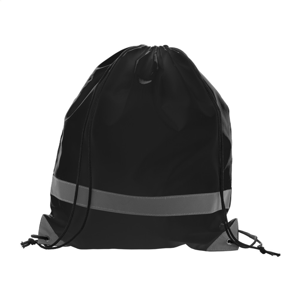 Fényvisszaverő hátizsák zsinór vállpánttal, az elején fényvisszaverő csíkkal. Anyaga: 190T poliészter. A termék kizárólag promóciós célra alkalmas, nem minősül egyéni védőfelszerelésnek.
