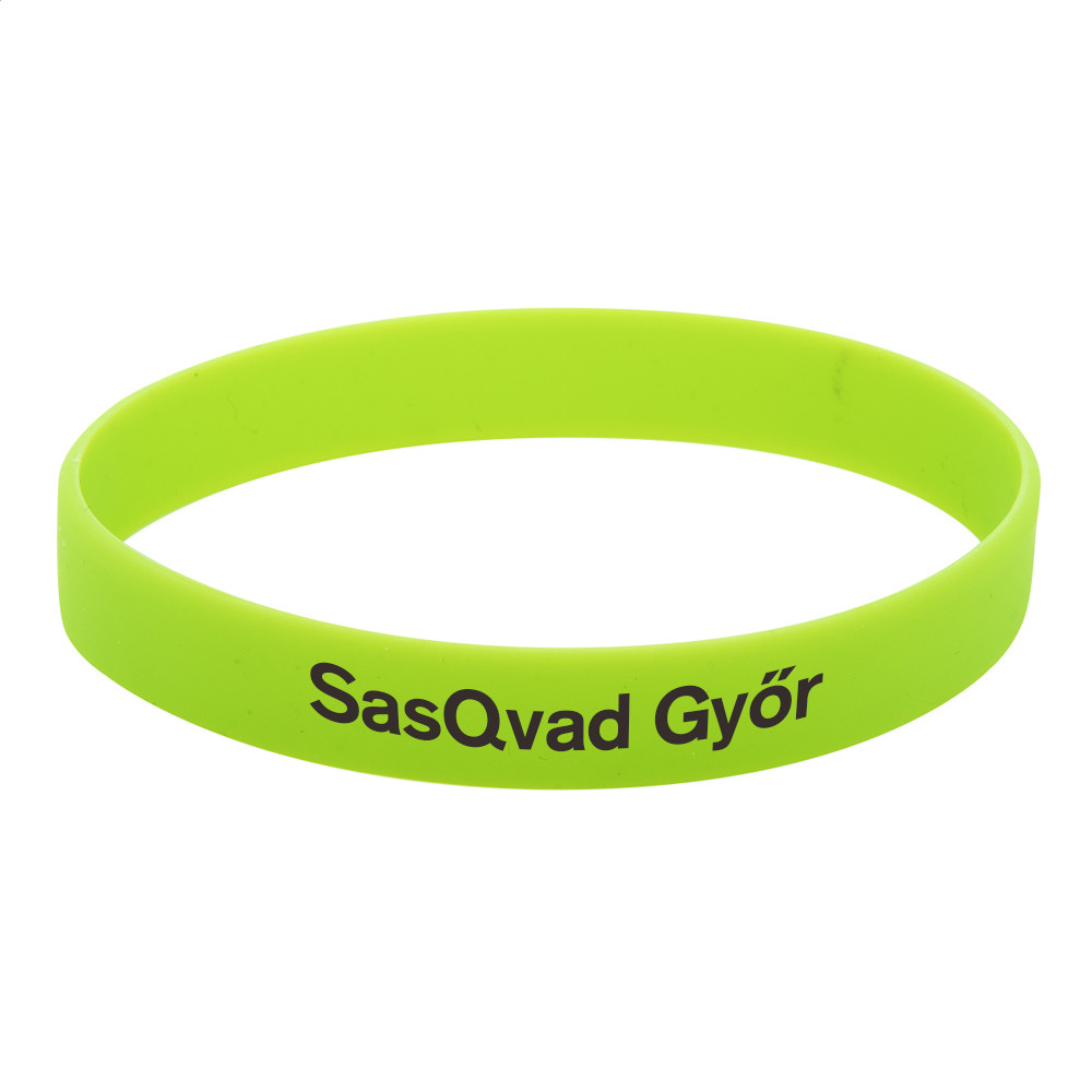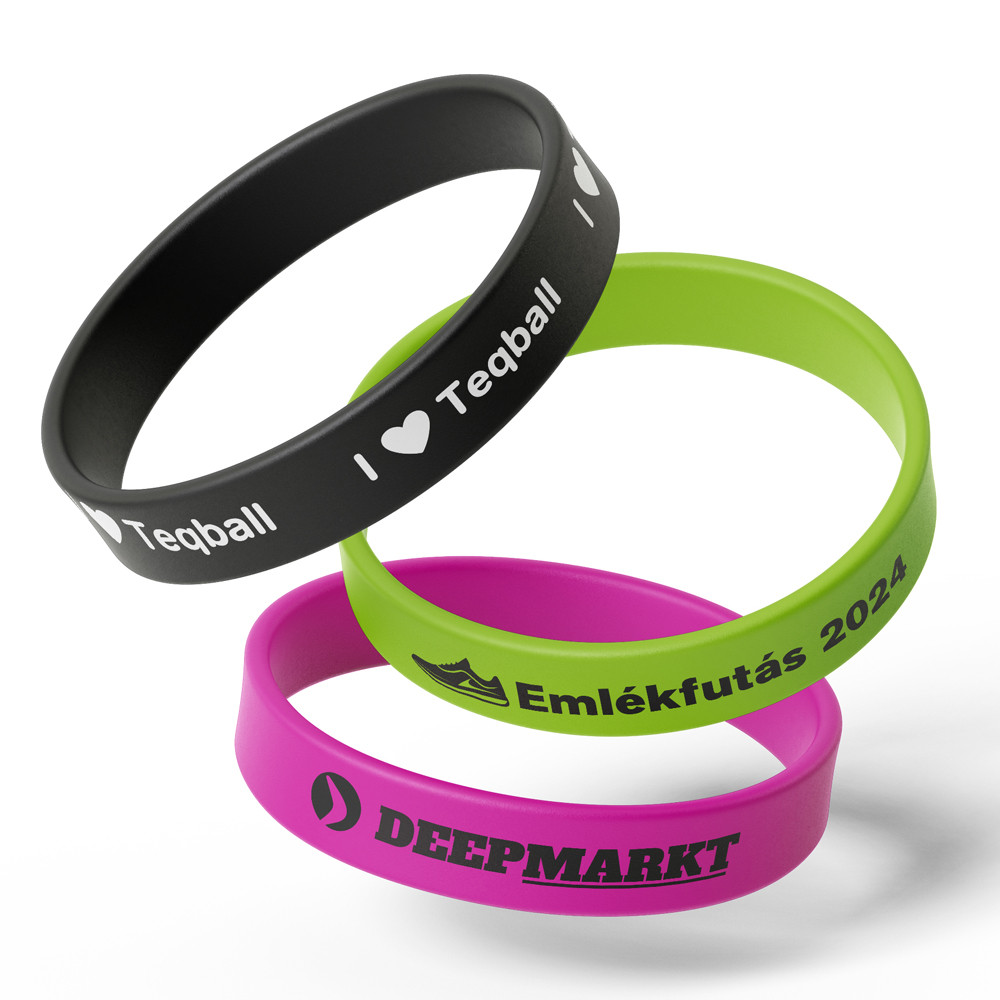 A szilikon karkötő rugalmas, vízálló és hosszú távon is megtartja formáját. A logó vagy felirat szitanyomással kerül a felületre, amely élénk színeket és jól látható megjelenést biztosít.